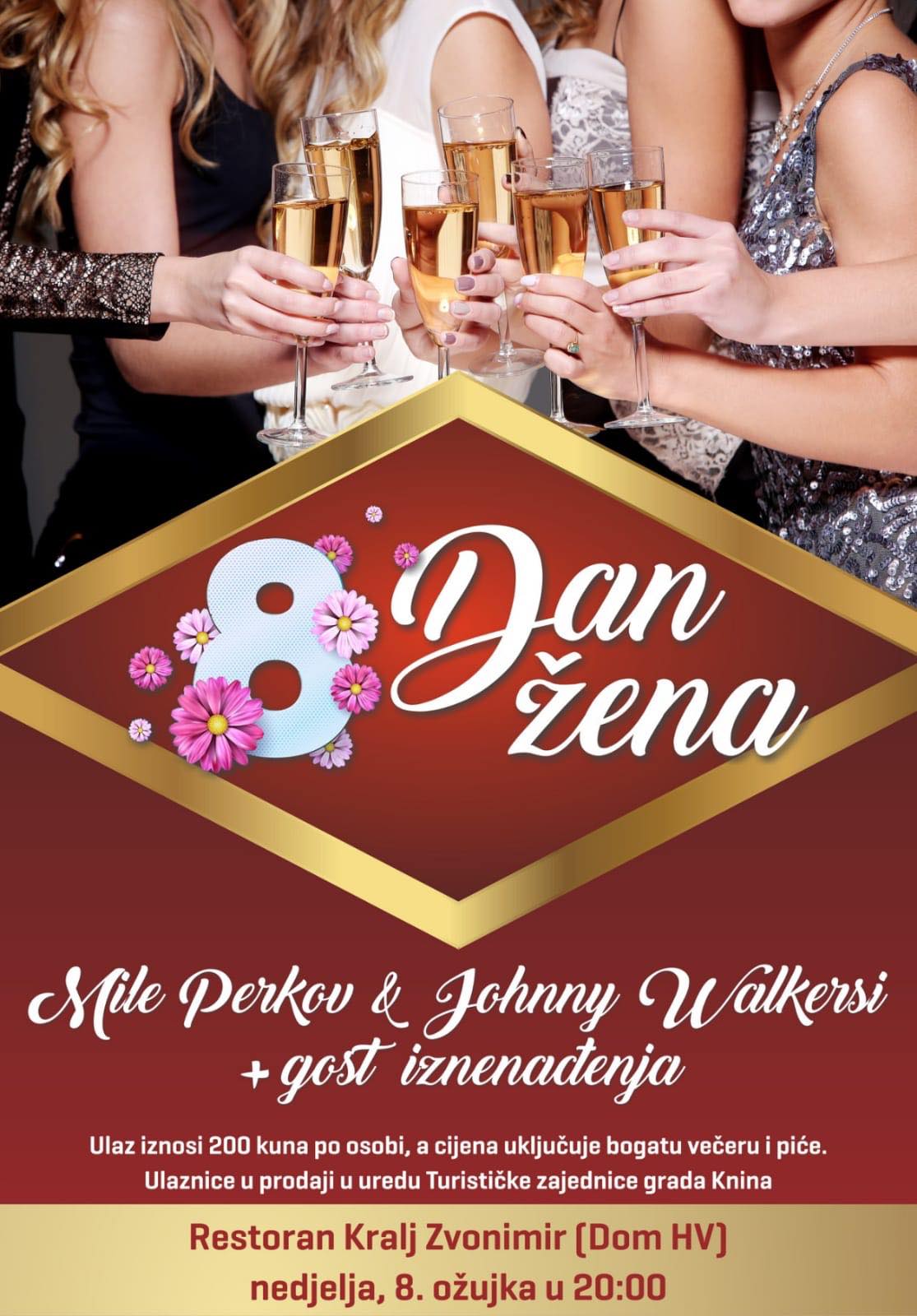 U nedjelju, 8. ožujka s početkom u 20 sati u restoranu Kralj Zvonimir (Dom HV), u organizaciji Grada Knina, kninske Turističke zajednice i Pleter usluga, slavimo Dan žena. Organizatori pripremaju večer skrojenu za uživanje, zabavu i opuštanje. Sveprisutne dame zabavljat će Mile Perkov & Johnny Walkersi, a tijekom večeri pojavit će se i gost iznenađenja.  Ulaznice u prodaji od danas! Broj mjesta ograničen, osigurajte ulaznice na vrijeme.