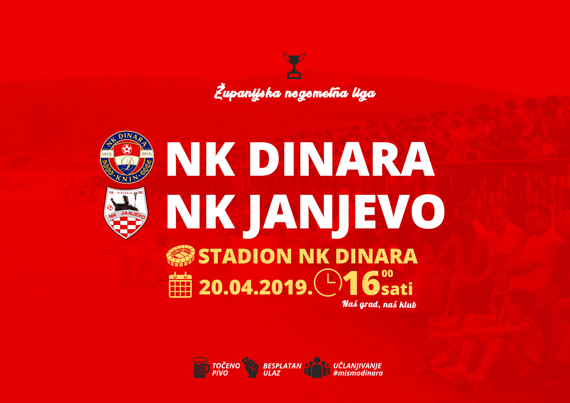 Nogometni klub Dinara ove subote u sklopu 12. kola Županijske nogometne lige dočekuje momčad nogometnog kluba Janjevo iz Kistanja.